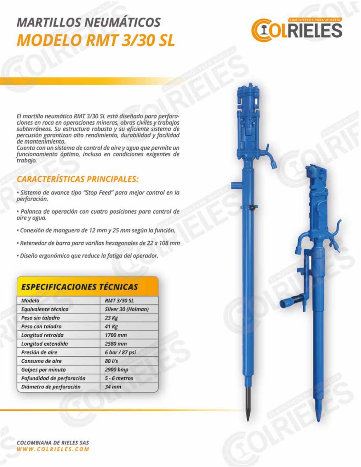 Gracias a su durabilidad, potencia y facilidad de mantenimiento, el RMT 3/30 SL Stoper Drill es la elección perfecta para minería de veta, perforación en túneles y proyectos de construcción subterránea, donde la resistencia y confiabilidad son indispensables.